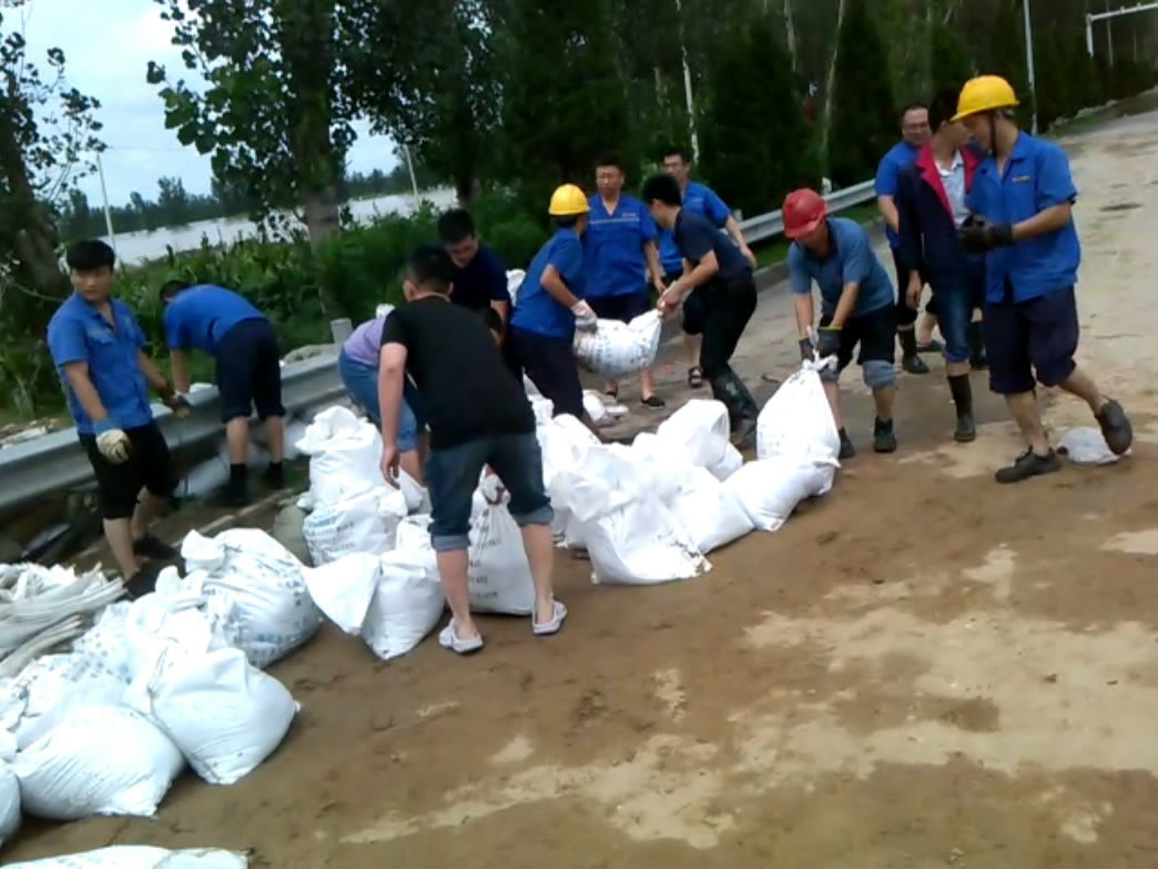 我公司接到通知後,迅速組織起40多人的志願(yuàn)搶險(xiǎn)隊(duì)伍,聯(lián)繫車輛一起趕赴口子村參與救援。到達(dá)現(xiàn)場(chǎng)後,積極服從上口政府領(lǐng)導(dǎo)安排,沿途值守,並在泥沙和沙袋送達(dá)後開(kāi)始裝填沙袋、堆堵到?jīng)┛谔?。從上午十點(diǎn)半一直到下午三點(diǎn),我公司志願(yuàn)者們連飯都來(lái)不及吃,全力以赴參與到搶險(xiǎn)工作中。