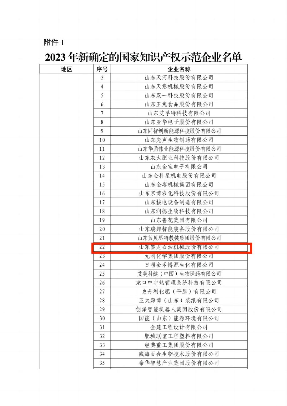 2023年11月29日,國家知識產(chǎn)權(quán)局公布了2023年新一批及通過復(fù)核的國家知識產(chǎn)權(quán)示范企業(yè)和優(yōu)勢企業(yè)名單,山東墨龍石油機械股份有限公司(以下簡稱“山東墨龍”)成功入選,成為壽光市首家國家知識產(chǎn)權(quán)示范企業(yè)。