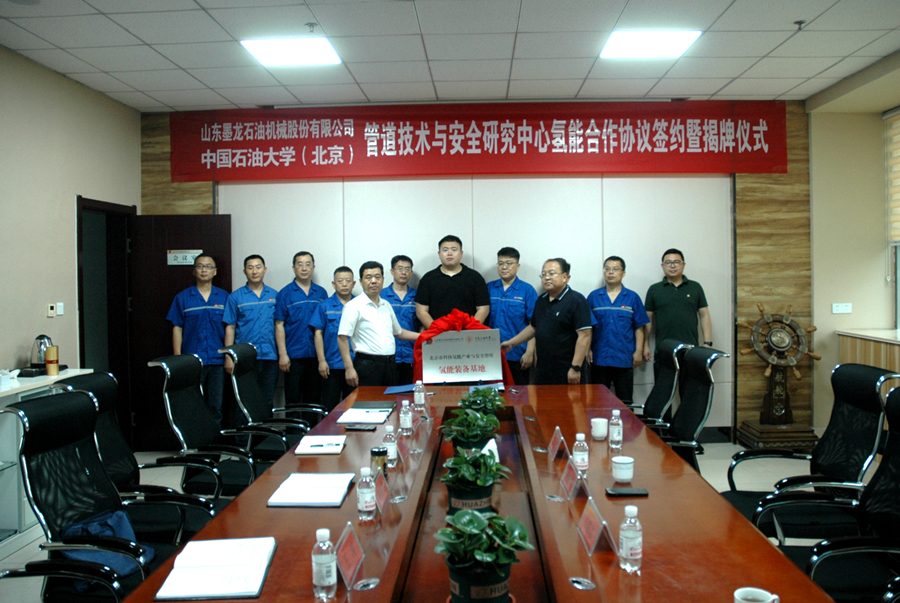 2024年7月4日上午,山東墨龍與中國石油大學(xué)(北京)舉行氫能合作協(xié)議簽約暨合作項(xiàng)目揭牌儀式。山東墨龍董事長韓高貴、中國石油大學(xué)(北京)管道技術(shù)與安全研究中心主任董紹華教授出席簽約儀式,并為合作項(xiàng)目氫能裝備基地、油氣管研發(fā)基地揭牌。